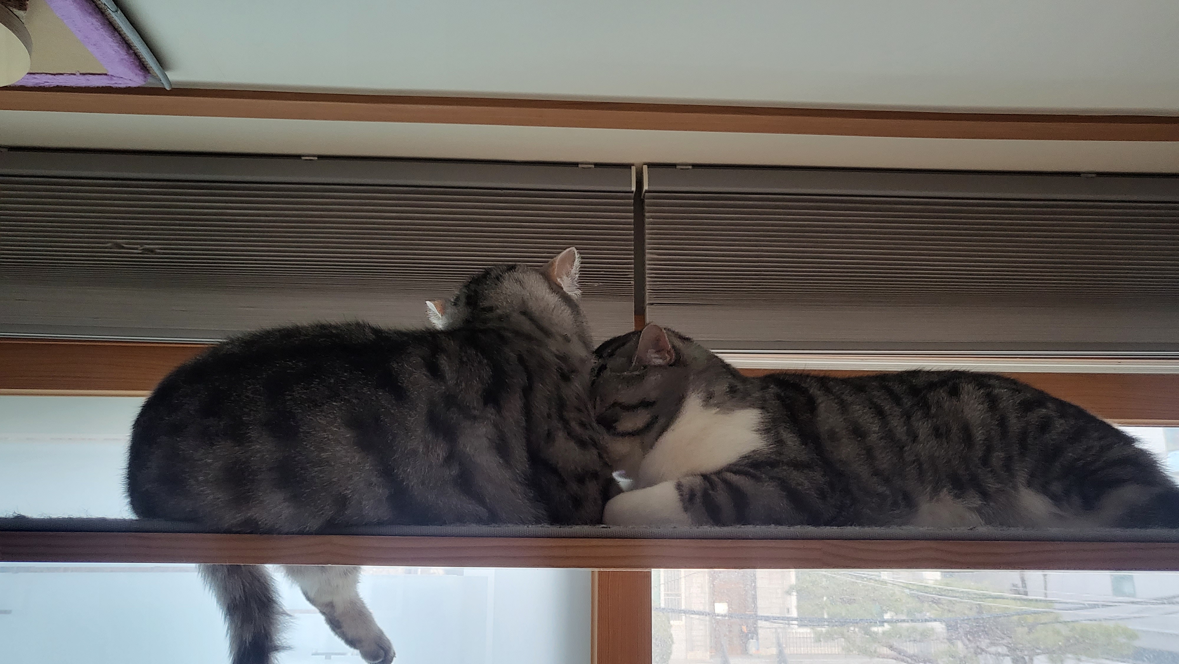 높은 곳을 좋아하는 고양이들, 수직놀이를 즐기는 고양이들을 위한 캣타워는 꼭 있으면 좋을 거예요. 놀이를 할 때도, 쉴 때도, 밖을 감상할 때도 고양이들에겐 상당히 편안해 보이는 공간입니다.