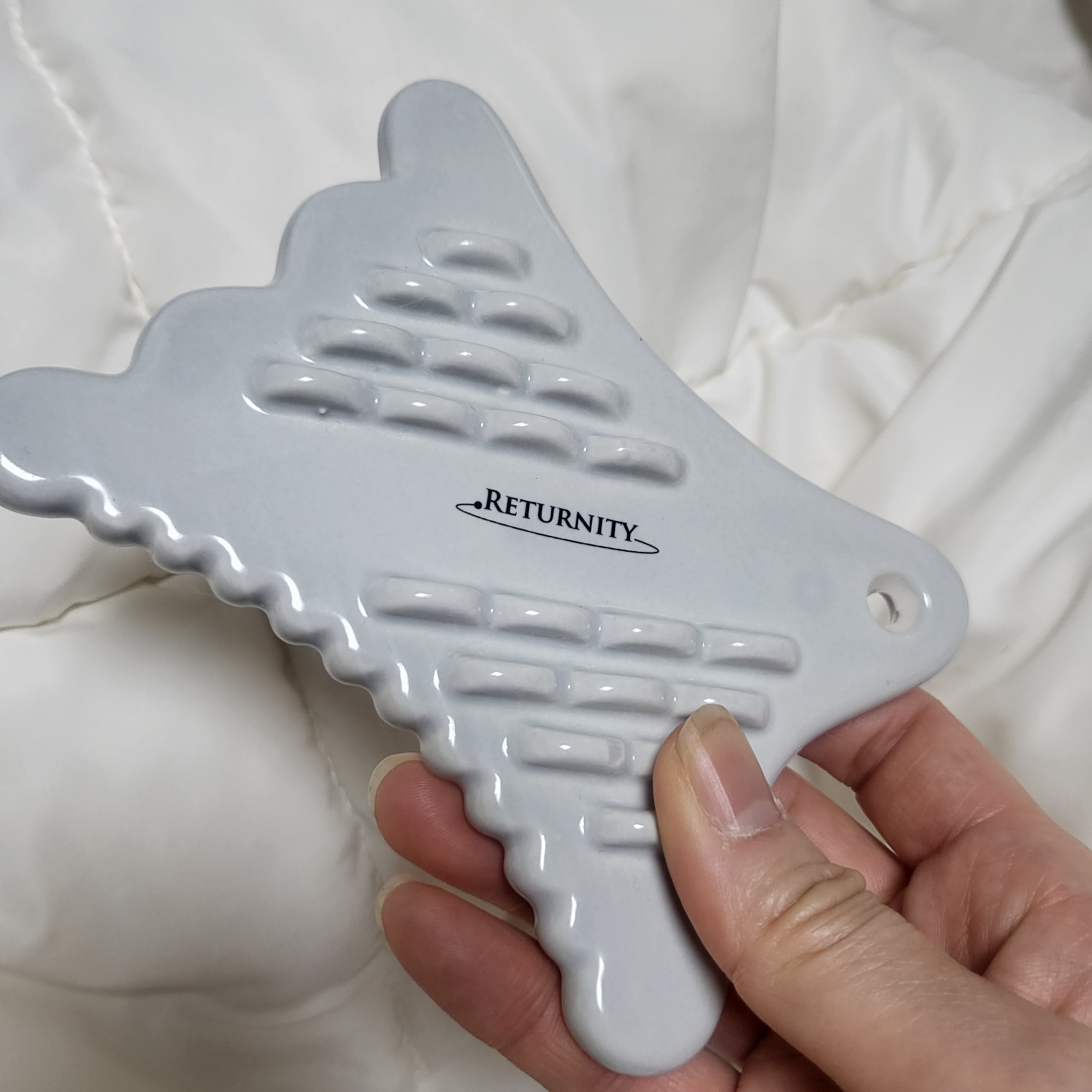 개발자가 직접 사용하면서 보완하여 만든 제품인데 얼굴, 두피, 바디 각각의 라인에 가장 최적화 되어 있다고 생각되는 제품이었어요. 묵직한 도자기 재질이라 적당한 압을 줄 수 있어서 더 시원했습니다. 괄사 사용 시에는 꼭 오일을 발라주시는 게 좋습니다.
