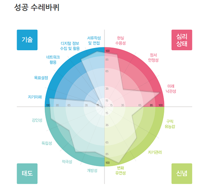 특히 강인성이 높아서 구직에 방해가 되는 요소가 있더라도 이를 이겨내고 구직활동을 지속하려는 경향이 있습니다.