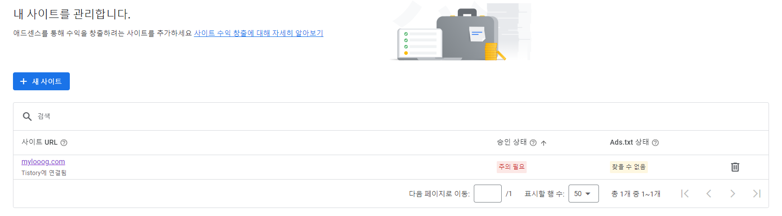 애드센스에서 광고를 받기 위해 당연히 내 블로그는 애드센스 사이트에 일종의 '입주신고'를 해야합니다.