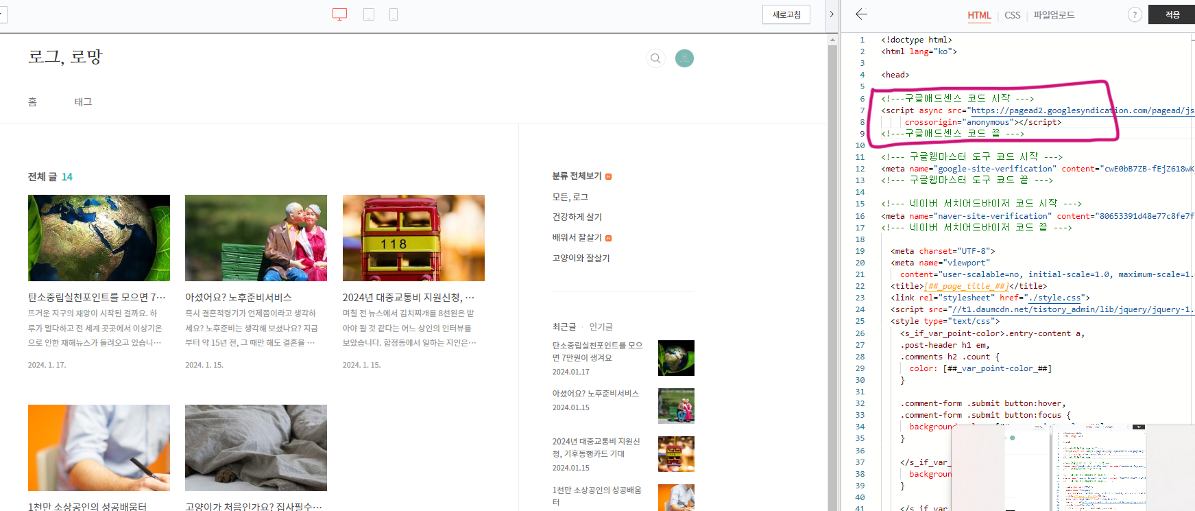 애드센스 광고코드 넣는 방법