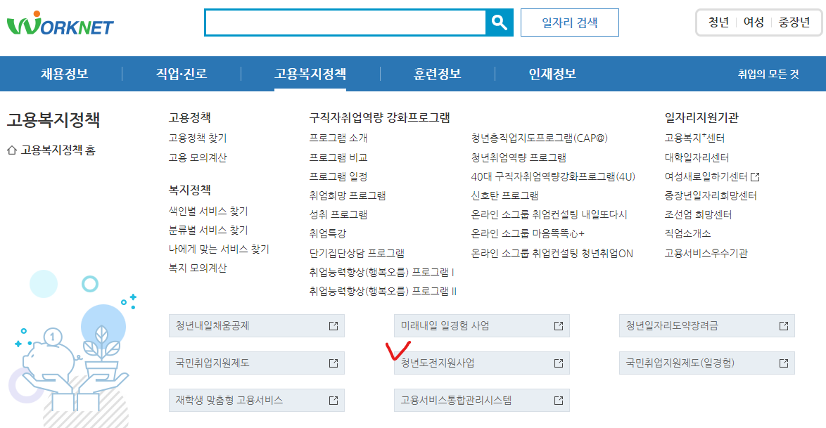 청년도전지원사업 신청페이지 바로 가기