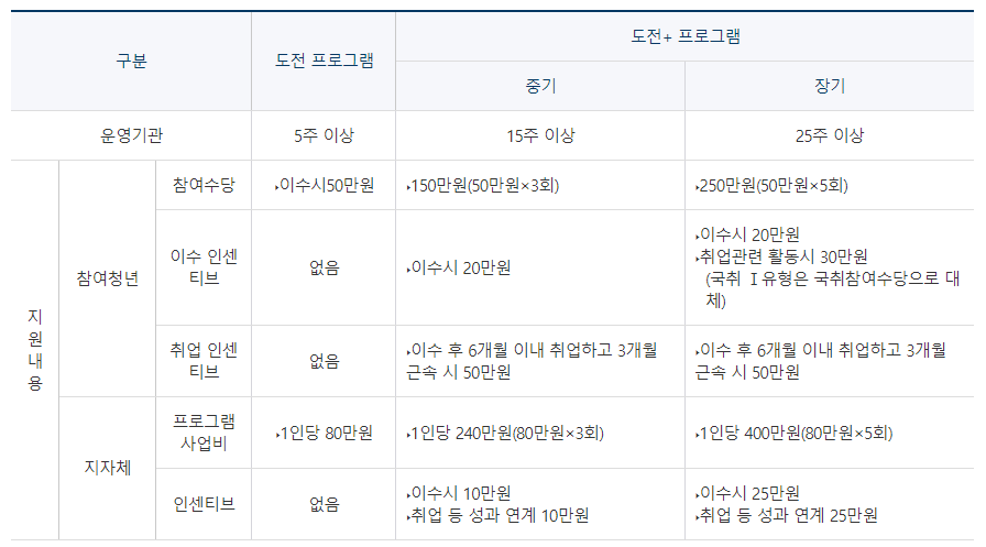 | 청년도전지원사업 참여자 지원내용